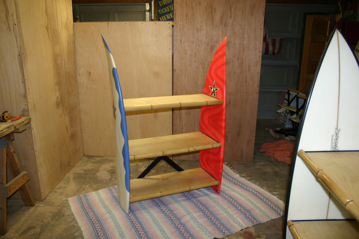 The bamboo facing on each shelf isn’t just about robustness; it’s a nod to the tropical origins of surfing. This decorative touch adds warmth and a natural aesthetic to the clean lines of the shelf, ensuring that your storage solutions are not just practical but also visually captivating.