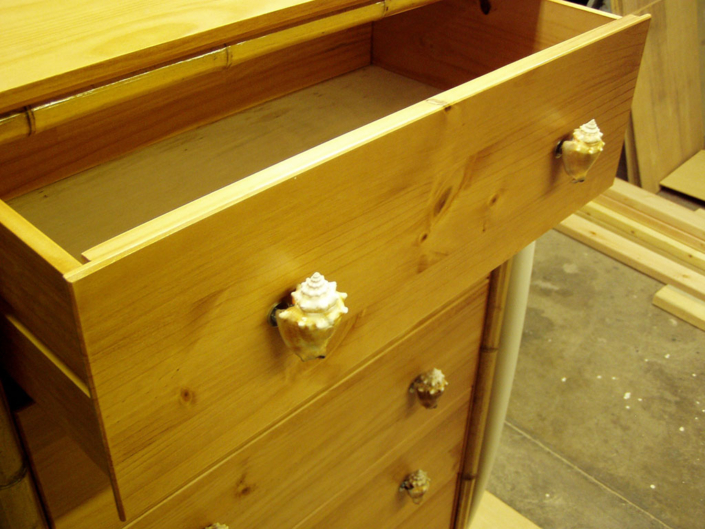 Our headboards, whether sculpted from nimble short-boards or the grandeur of long-boards, stand as tributes to the surfing ethos. Paired with our dressers, which echo the fluid lines and robust character of the sea, this duo transforms your bedroom into a coastal haven. The dressers, practical yet evocative, provide ample storage space, their drawers sliding open like the pull of the tide, holding your belongings in their wooden embrace.